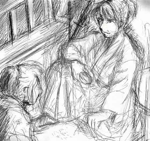 「神谷さん、大丈夫でしょうか?」 宿屋で待機している総司は、誰に言うのでもなくそうつぶやいた。 こちらには、新八とそれぞれの隊から手練れの者数名が待機している。 「あいつなら、上手くやるさ。池田屋の時みたいにな。」 無精髭をなでながら、新八は弟分を落ち着かせるように言った。 「そう・・・ですよね・・・。」 「むしろ、心配なのは、お前の方だぜ,総司。あの時、昼間笠もかぶらず、凧揚げをしていて遊んでいたのが倒れた原因だっていうじゃねぇか。今日は、大丈夫だろうな。」 盃をくいっと傾け,からかいの眼差しで問い掛ける。 「いや・・・本当に,あの時は、面目ない。今日は、大丈夫ですよ。」 「ならよ、神谷に何かあったらどうしようと考えるんじゃなくて、同じ考えるのなら、この仕事が早く片付いてどこの甘味処へ連れて行こうかとそう考えてみろよ。なっ?」 普段、おちゃらけていても、仕事となるとけじめをつけ、頼もしい兄貴分の言葉に、総司は「はい。」と力強く頷いた。 ━「残り香」(前編)より━